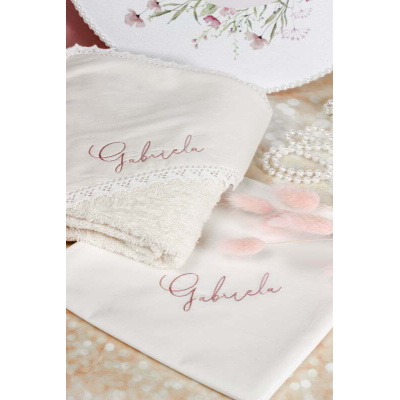1 x Cutie imprimata personalizata cu numele bebelusului si data evenimentului; ,1 x Fasa personalizata cu numele prin broderie ,1 x Panza de mir cu dantela personalizata cu numele prin broderie ,1 x Prosop bebe cu dantela personalizat cu numele prin broderie ,1 x prosop preot ,1 x Sapun handmade personalizat; |