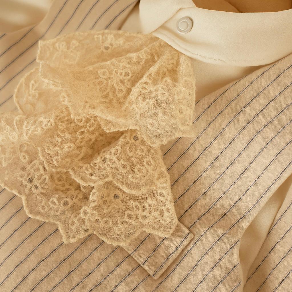 Costum Botez Vara Bogo – Realizat din stofa premium, cu dungulite; un costum lejer, de vara, comod, dar elegant, ce se prezinta ca set intreg impreuna cu camasa alba, din bumbac fin, ce nu irita pielea micutului. Este accesorizata cu jabou la gulerul de tip tunica si dantela la incheietura mainii ce confera o eleganta aparte micutului domnisor.
