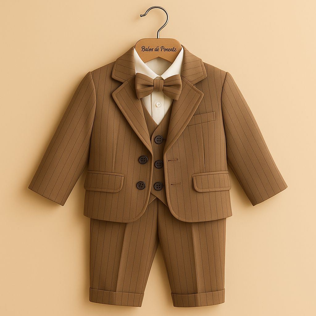 Costum de Botez pentru băiețel, maro cu sacou si papion – Model Noble