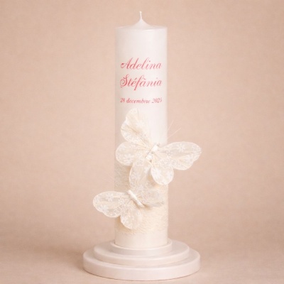 Fiecare detaliu este gândit pentru a transmite gingășie, puritate și emoție, transformând lumânarea într-un element central al ceremoniei de botez, dar și într-o amintire de preț.