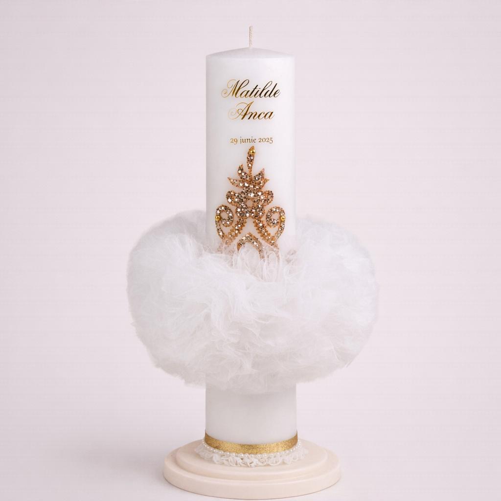 Lumânare de Botez elegantă cu detalii aurii – Model Queen