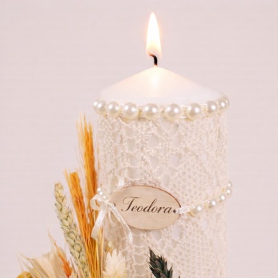 Pentru un ansamblu complet și armonios, recomandăm asortarea lumânării cu un trusou de botez, o ținută de botez sau alte accesorii atent alese, pentru un rezultat echilibrat și elegant.