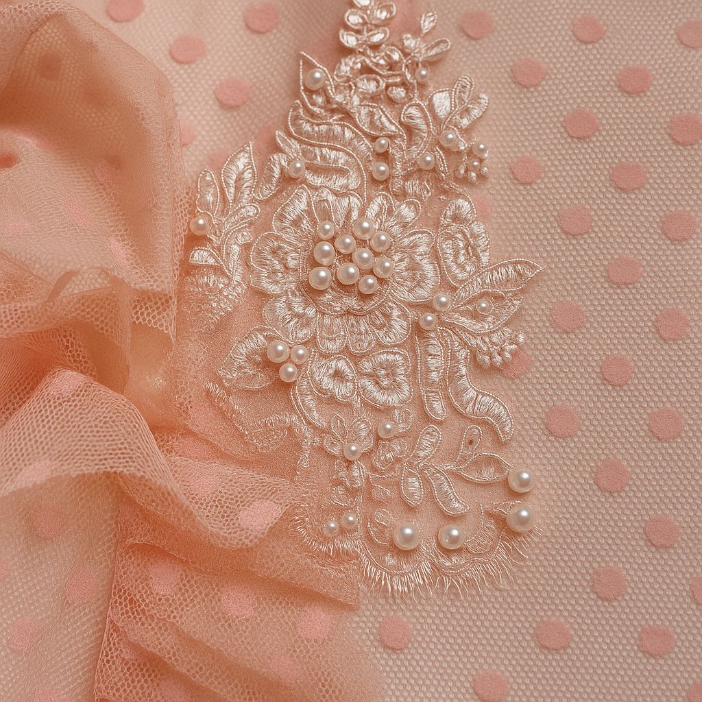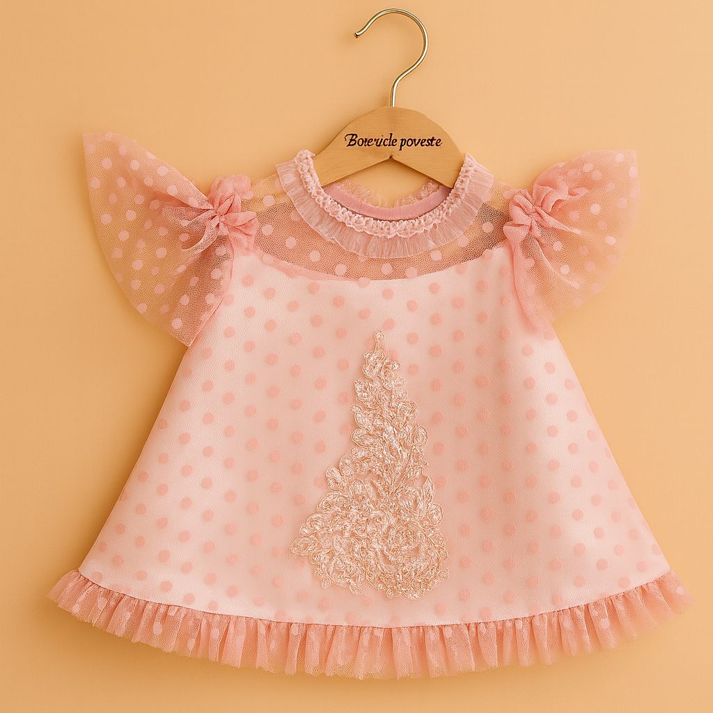 Rochiță elegantă din tulle cu buline roz si detalii florale – Model Wanda