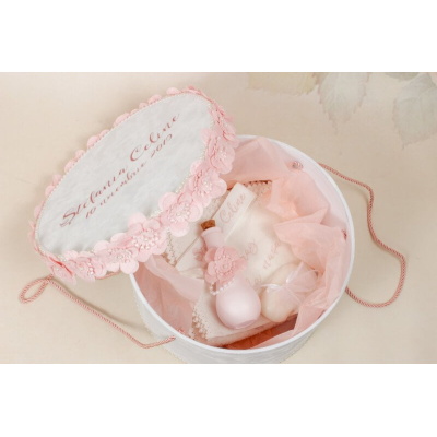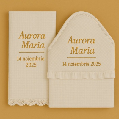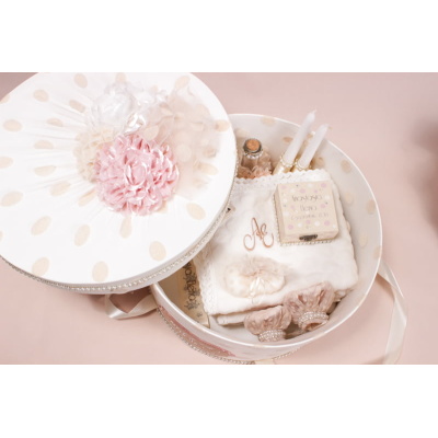 1 x Cutie imprimata personalizata cu numele bebelusului si data evenimentului; ,1 x Fasa personalizata cu numele prin broderie ,1 x Panza de mir cu dantela personalizata cu numele prin broderie ,1 x Prosop bebe cu dantela personalizat cu numele prin broderie ,1 x prosop preot ,1 x Sapun handmade personalizat; |