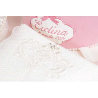 - Prosop bebe cu dantela personalizat cu numele prin broderie;