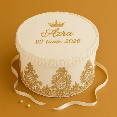 - Cutie din catifea, personalizata cu numele bebelusului si data evenimentului;