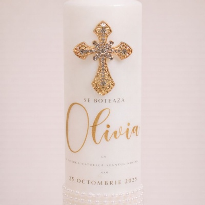 Lumânare de botez pentru fetiță, elegantă, clasică – Model Olivia