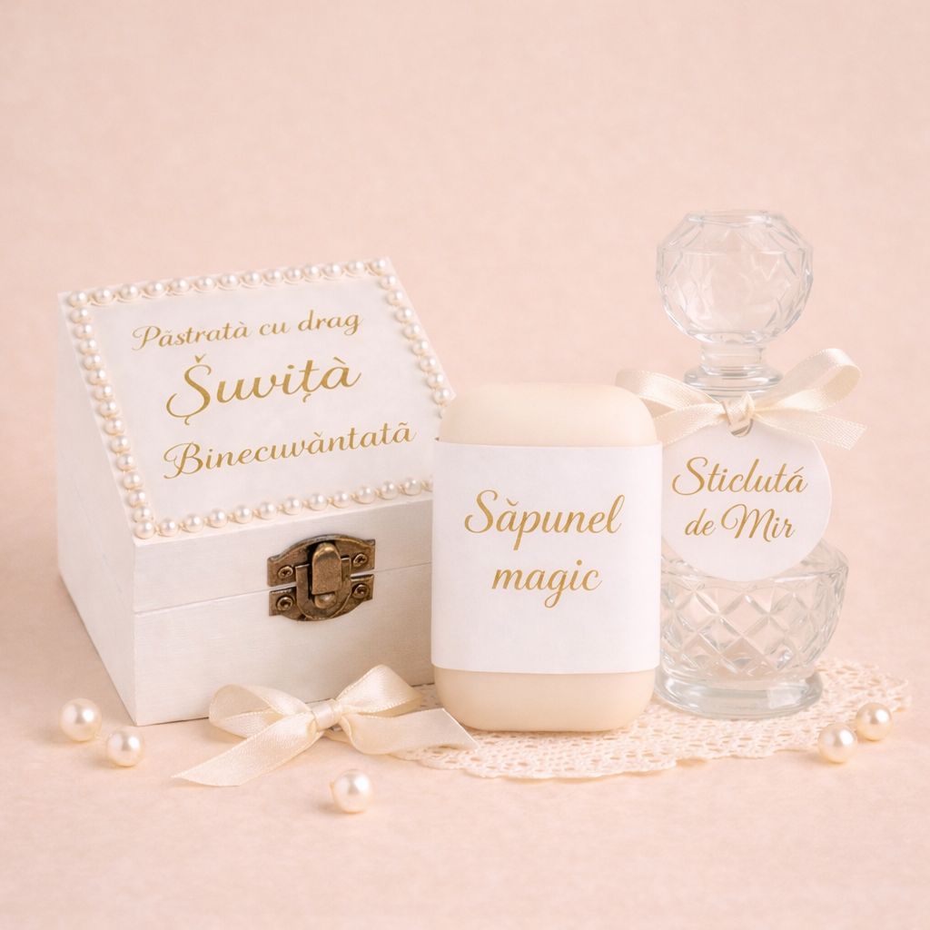 Livrăm oriunde în țară și în lume, cu aceeași grijă pentru detalii și calitate, indiferent de destinație. Fiecare comandă este pregătită cu atenție, astfel încât produsele să ajungă în condiții impecabile, gata de a fi folosite în ziua botezului.