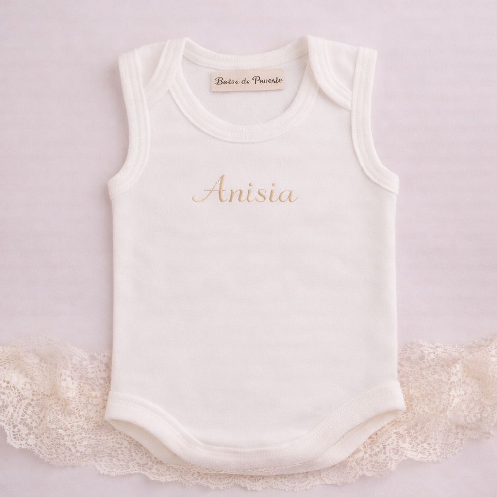 - Panza de mir din bumbac, personalizata cu numele prin broderie;