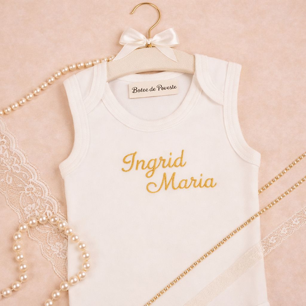 Varietatea de modele îți permite să alegi între trusouri elegante, clasice, tradiționale sau tematice, inspirate din concepte moderne, simboluri religioase sau detalii delicate, adaptate vârstei fragede și stilului dorit.