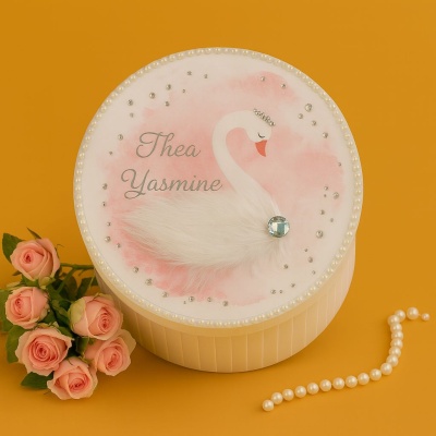 Trusou elegant de botez, cu lebădă și pene delicate – Model Swan Queen Silver