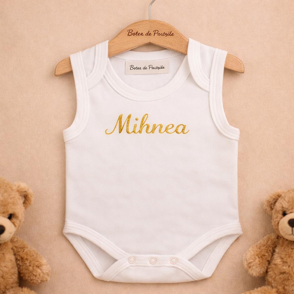 - Body pentru bebeluși – optional personalizat cu numele bebelușului sau cu inițialele.