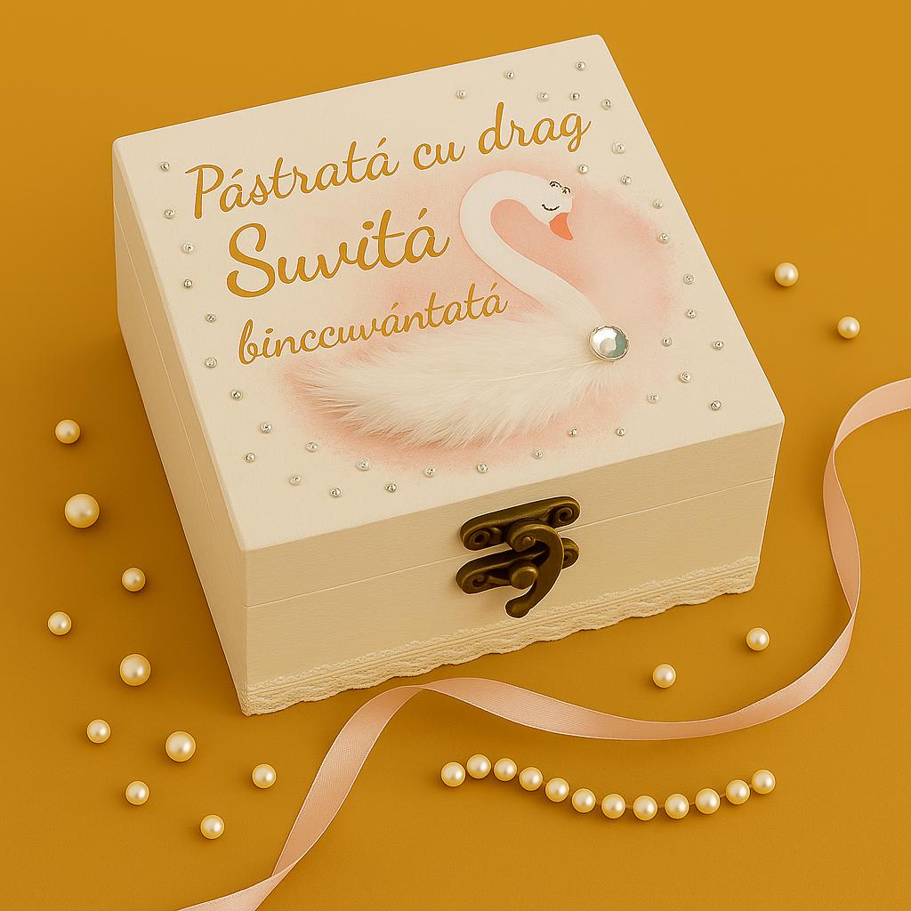 - Cutie lucrata manual personalizata cu numele bebelusului si data evenimentului